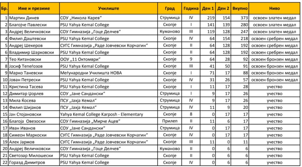 На натпреварувањата учениците можеа да ги проверат своите знаења меѓусебно, а и во споредба со свои врсници од други земји како Турција, Бугарија, Србија и Белгија.